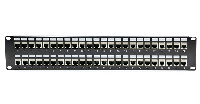 CAT6A Keystone Inline Coupler Loaded HD Flush Mount Shielded Patch Panel Rack Mount 2U- 48 Port