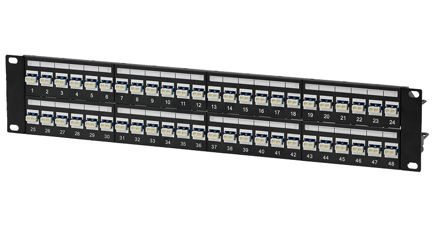 LC Duplex Singlemode, Keystone Coupler Loaded HD Flush Mount Patch Panel, Rack Mount 2U- 48 Port Blue